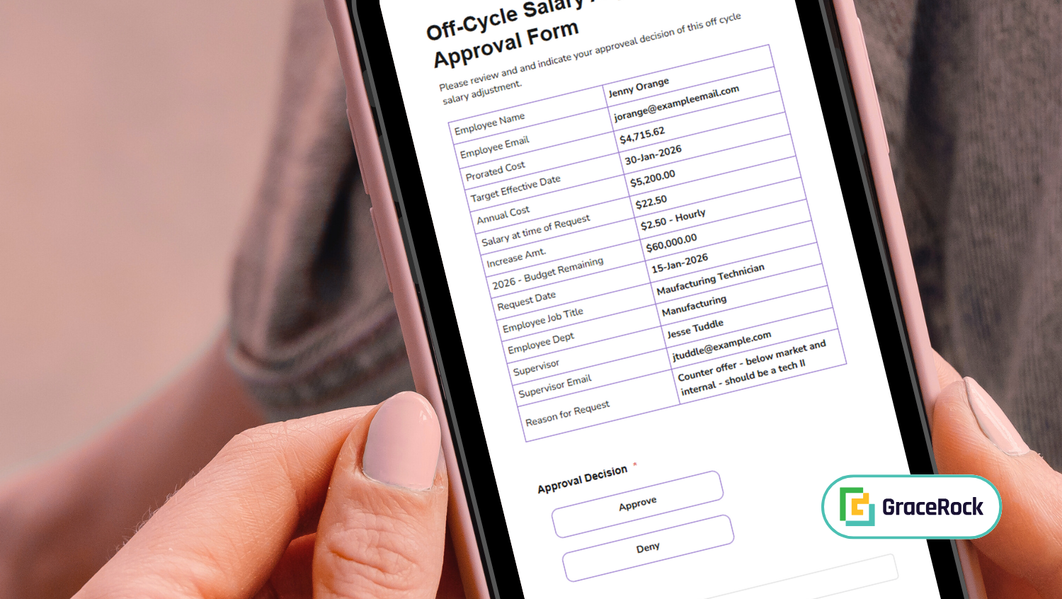 HR reviews, then routes for leadership sign-off.